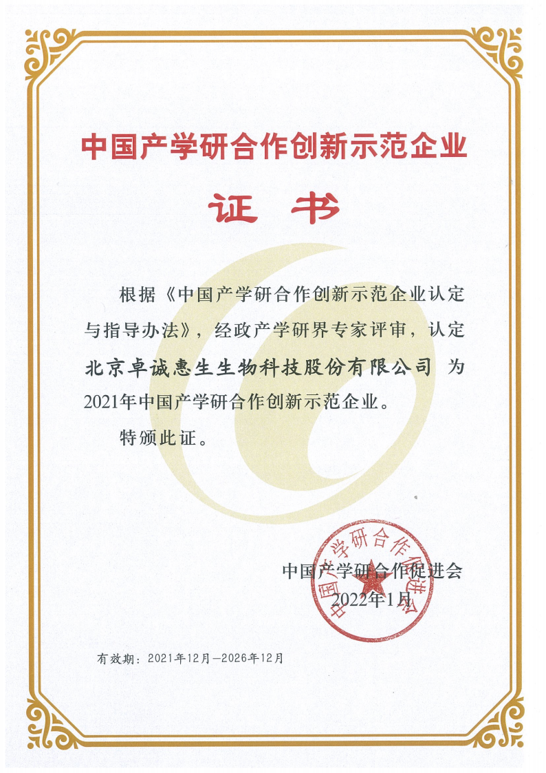- 中國產學研合作創(chuàng)新示范企業(yè)